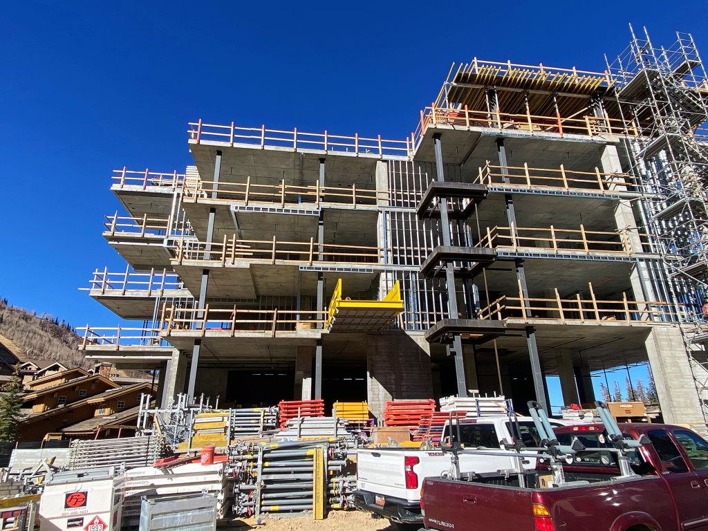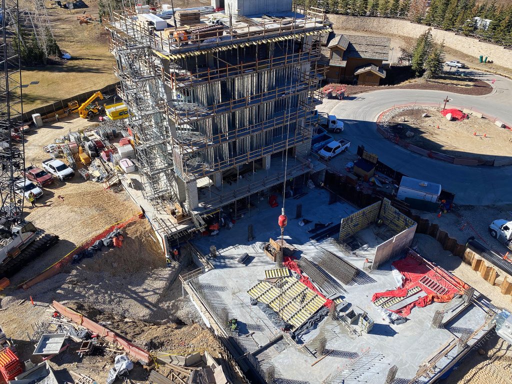 Below is an update on the construction progress achieved in October 2025 at Sommét Blanc in Empire Pass at Deer Valley® Resort. Milestones include the installation of concrete walls and ceiling in the subterranean Bowling Level at the east end of Building A, the pouring of concrete at Level Seven of the north end of Building B, PT cable installation for the southern half of Level Two in Building B, and the continuation of utilities and drywall in Building C.